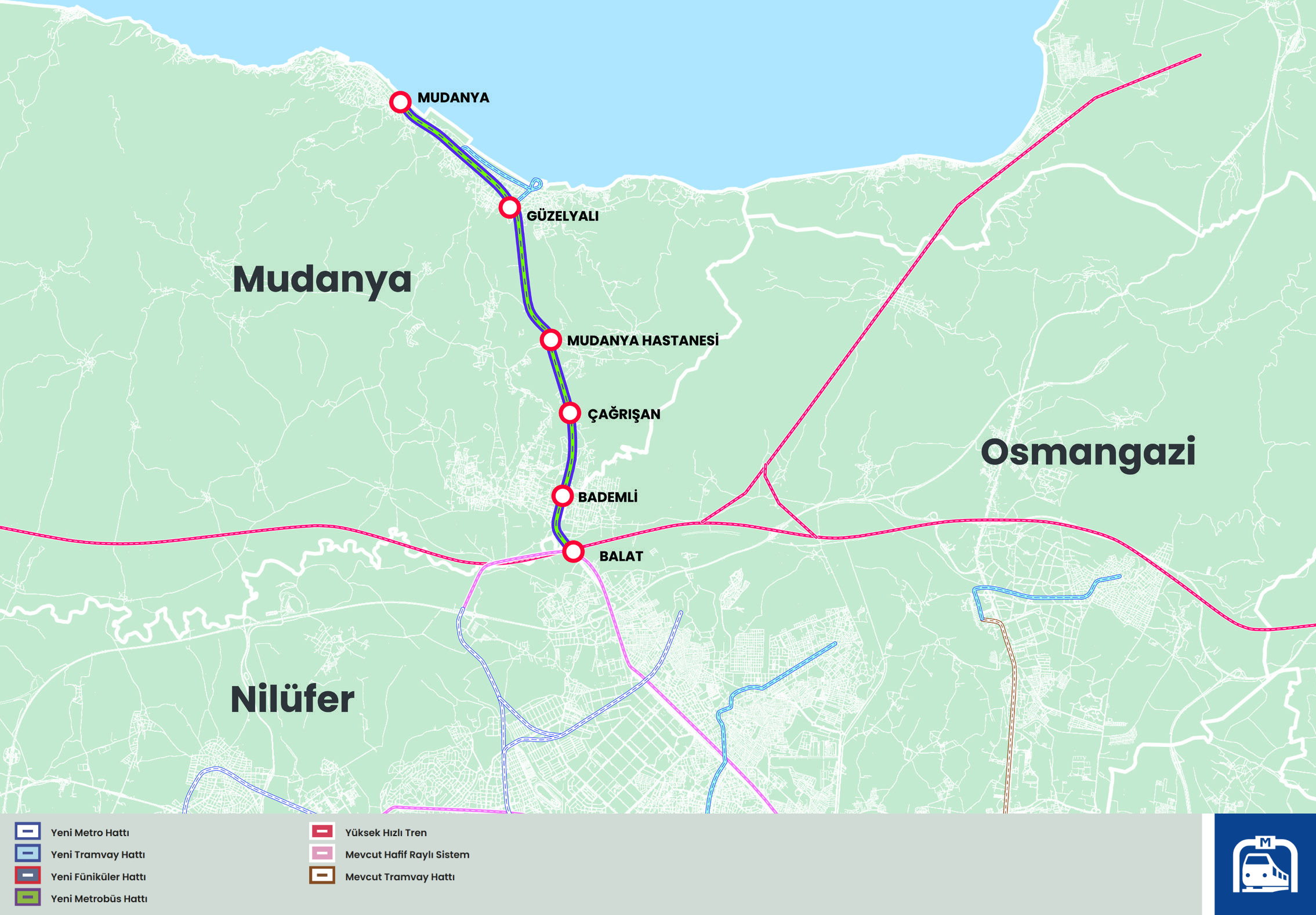 Balat, Bademli, Çağrışan, Mudanya Hastanesi, Güzelyalı, Yeni Mahalle, İstasyon, Mudanya
