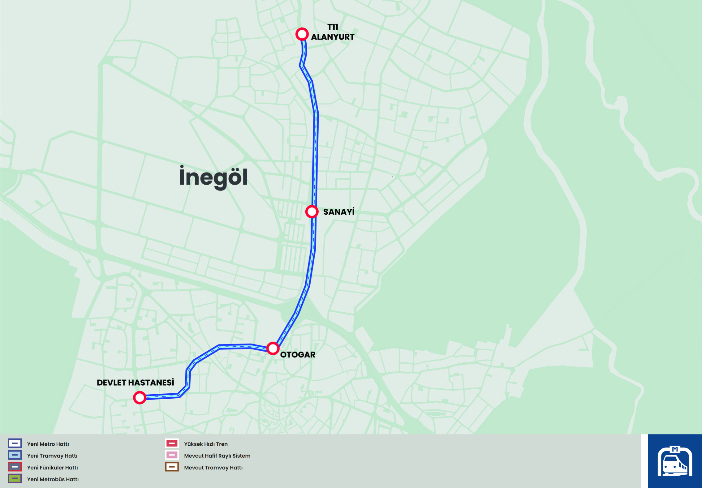 İnegöl, Devlet Hastanesi, Otogar, Sanayi, Alanyurt